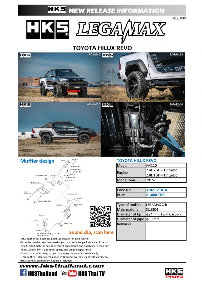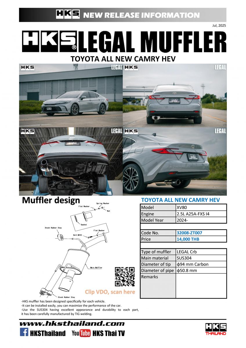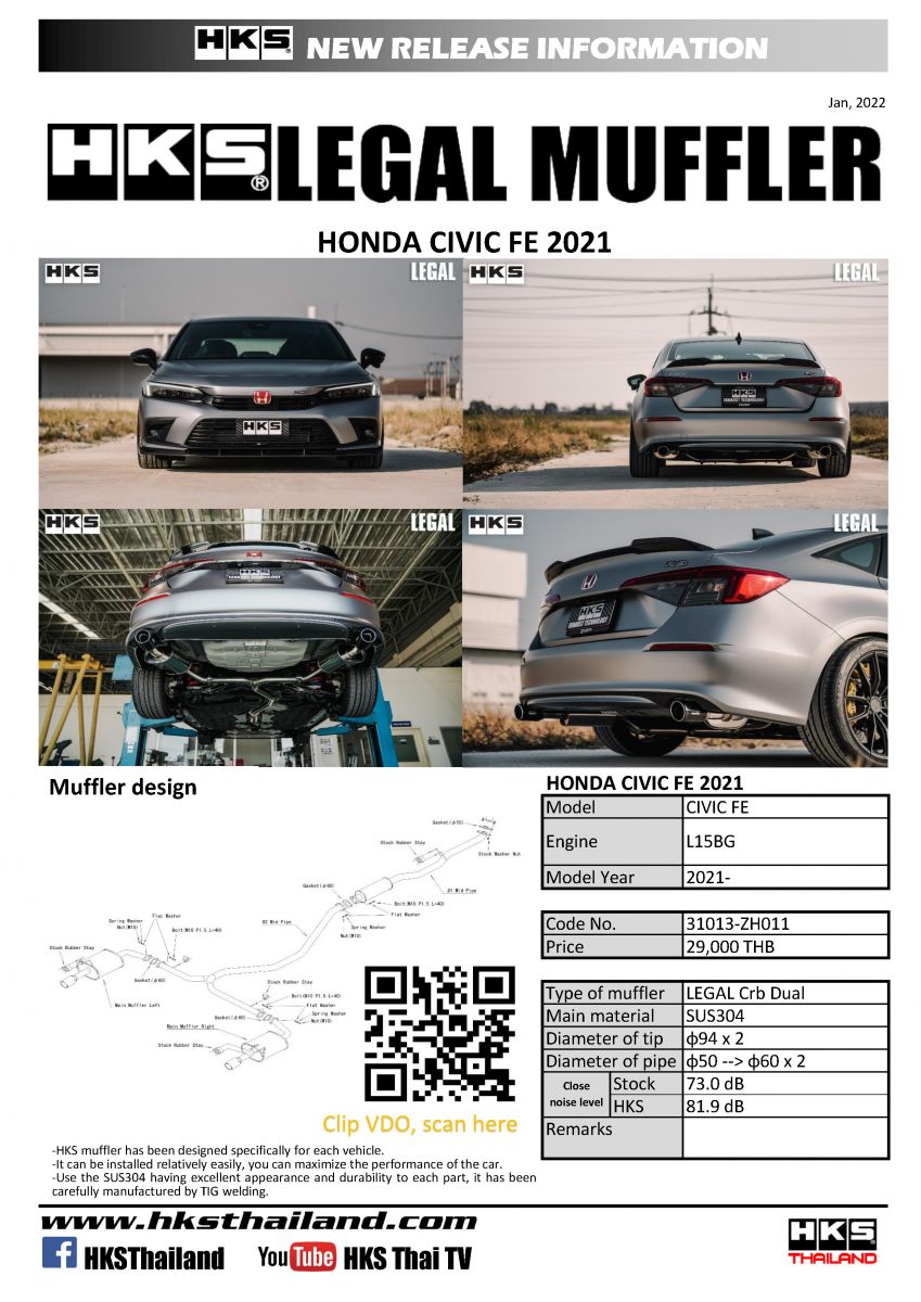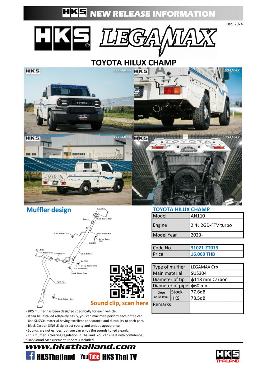 ■HKS MUFFLER SERIES / FRONT PIPE / CENTER PIPE SERIES for Thailand modelNew price from Feb 1, 2021.  |