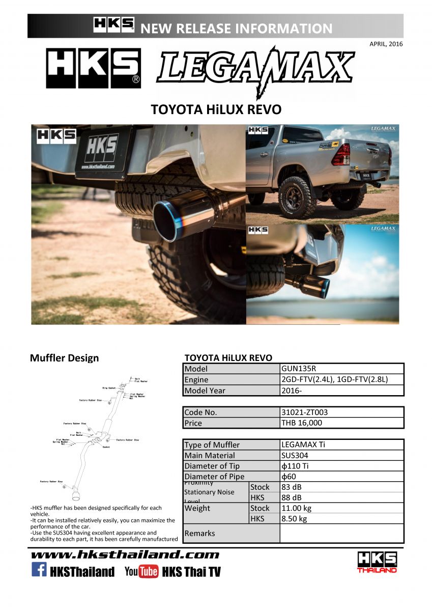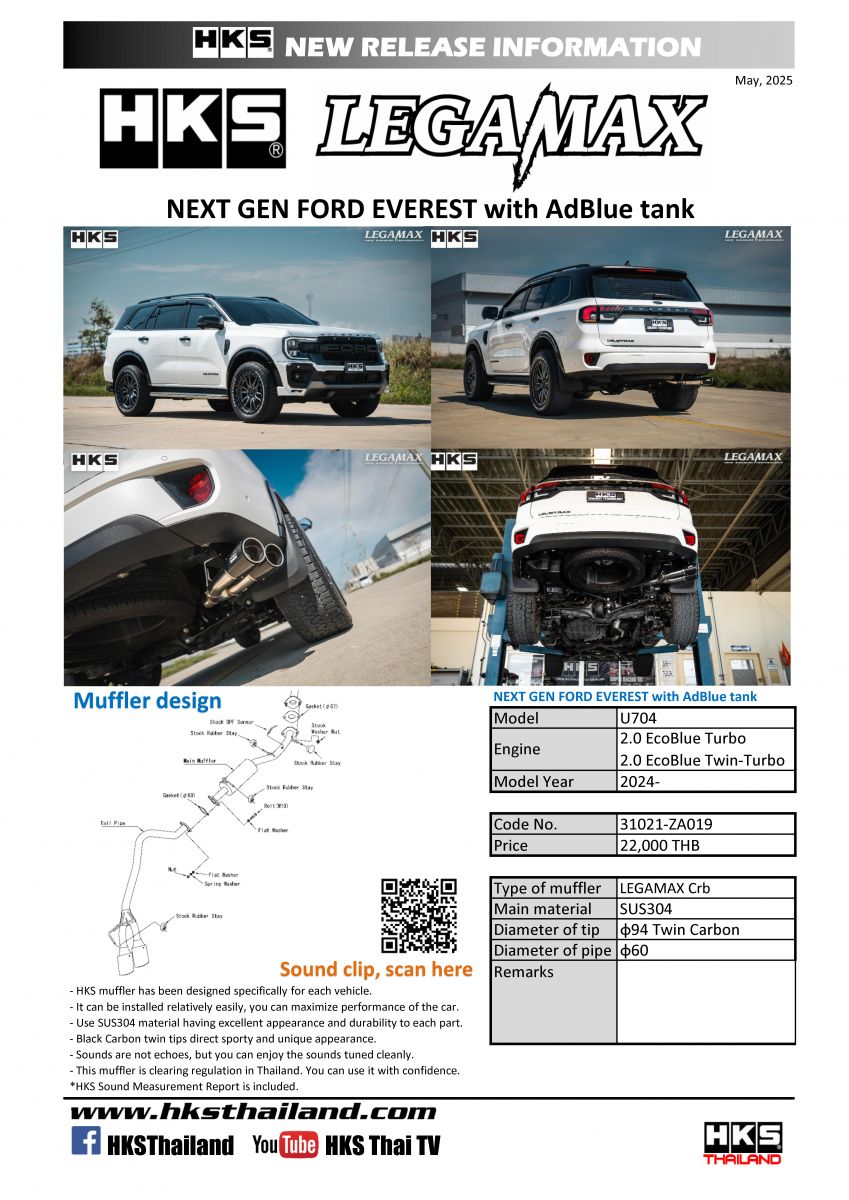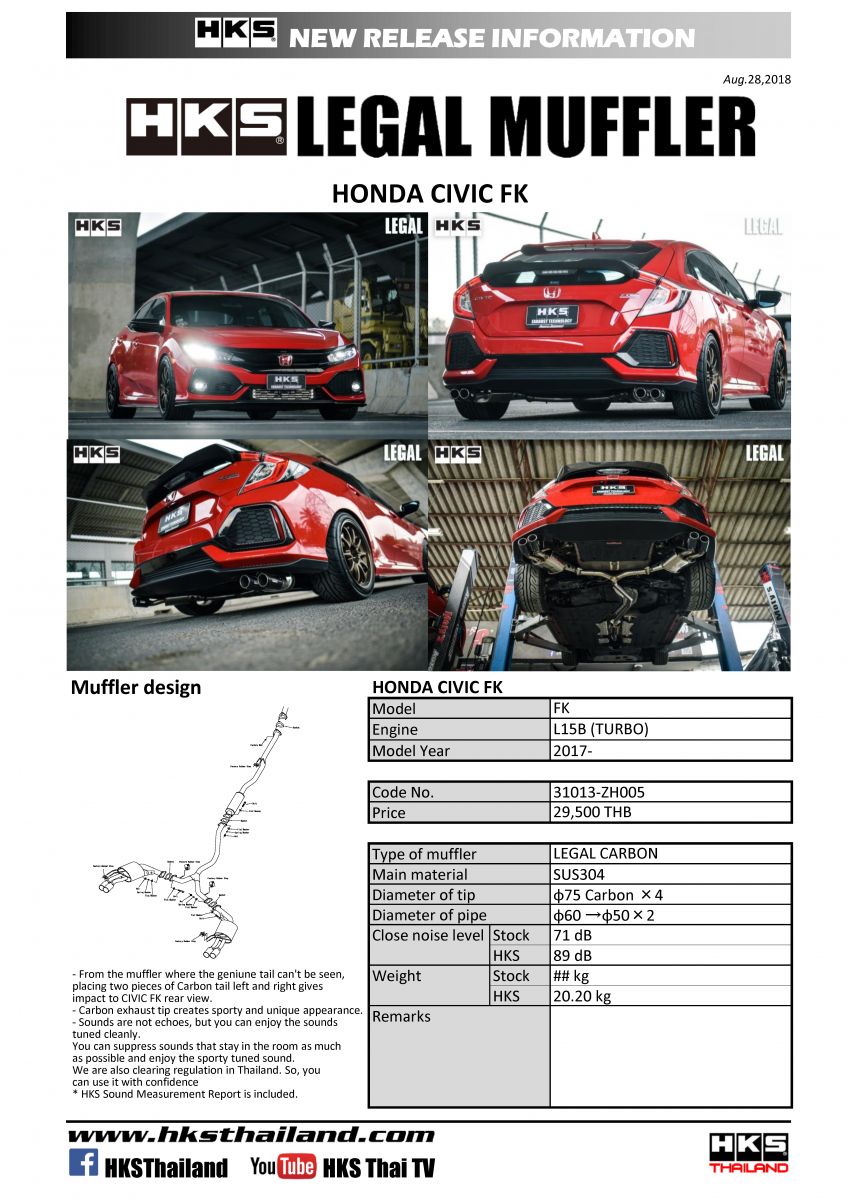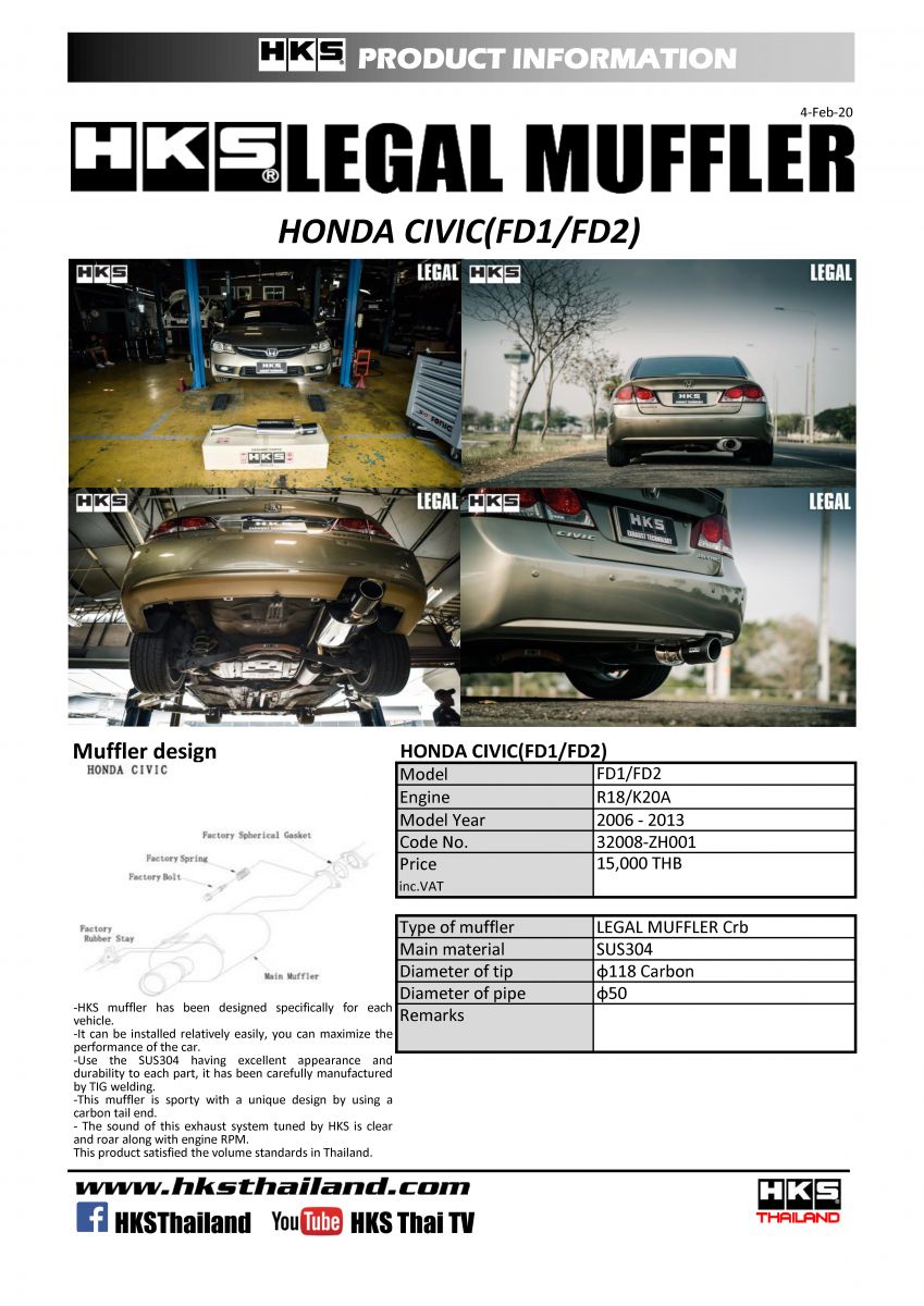 ■HKS MUFFLER SERIES / FRONT PIPE / CENTER PIPE SERIES for Thailand modelNew price from Feb 1, 2021.  |
