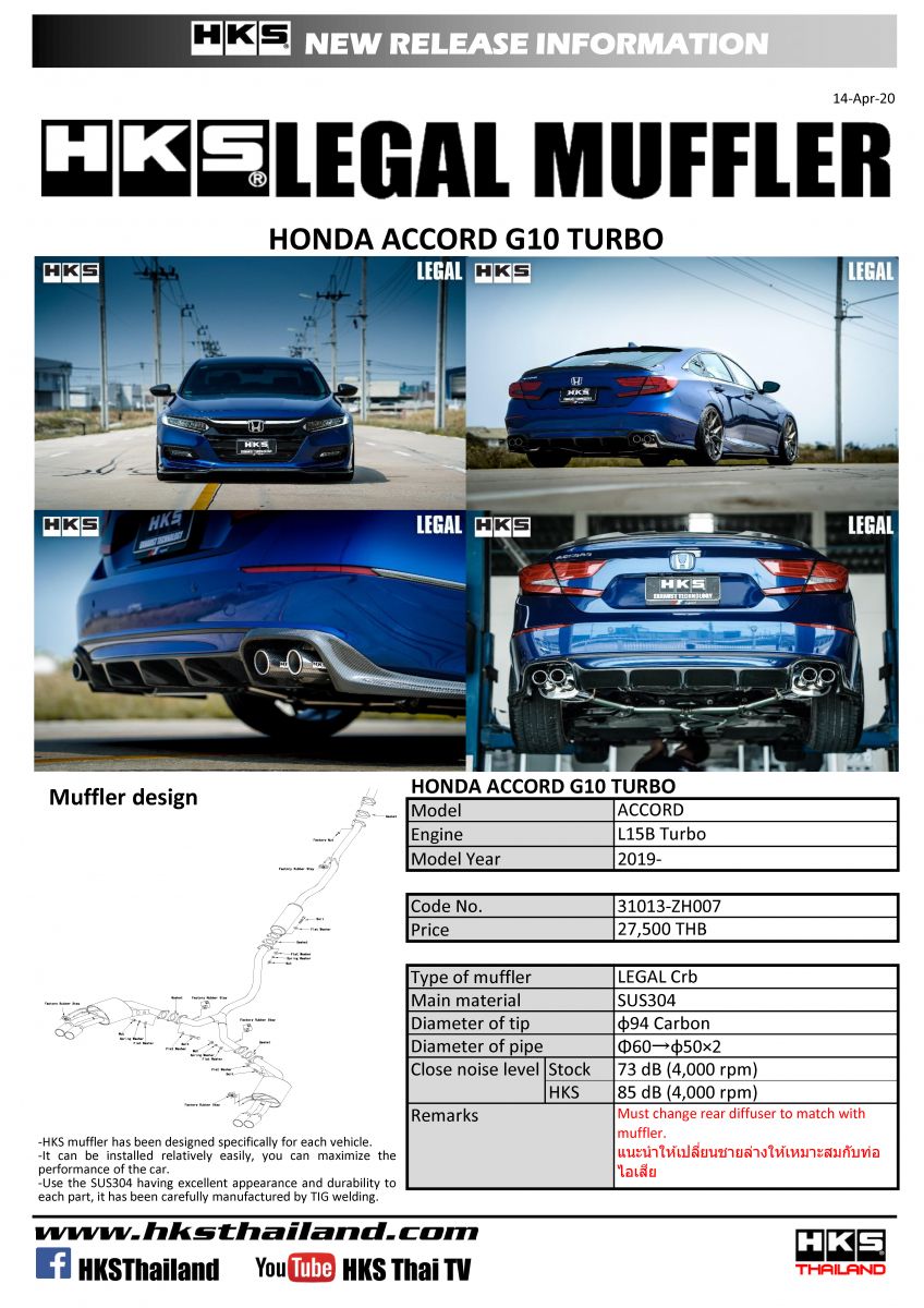 | ACCORD | G10 | L15B TURBO | 1500 cc | 2019- | LEGAL | SUS304 | 4 | 31013-ZH007 | ฿27,500 | Click | Carbon TAIL (Dual) |