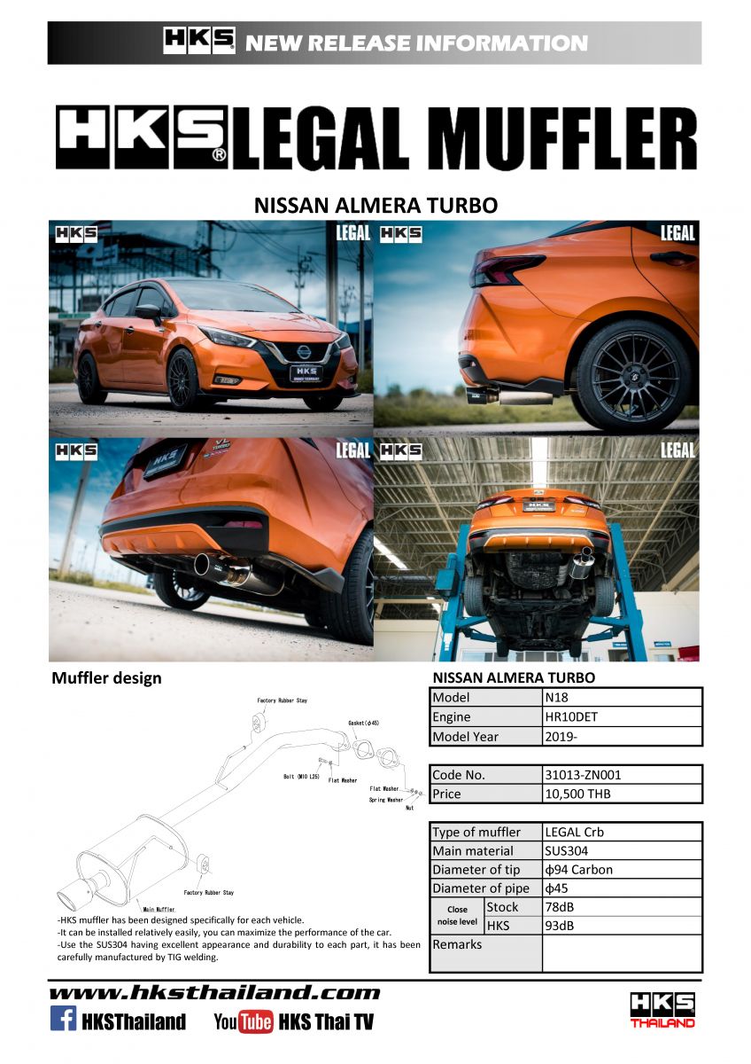| ALMERA TURBO | N18 | HR10DET | 1000 cc | 2019- | LEGAL | SUS304 | 1 | 31013-ZN001 | ฿10,500 | Click | Carbon TAIL (Single) |