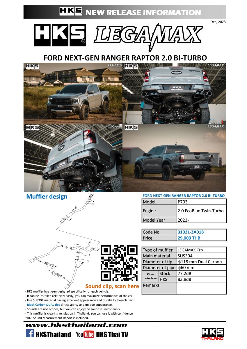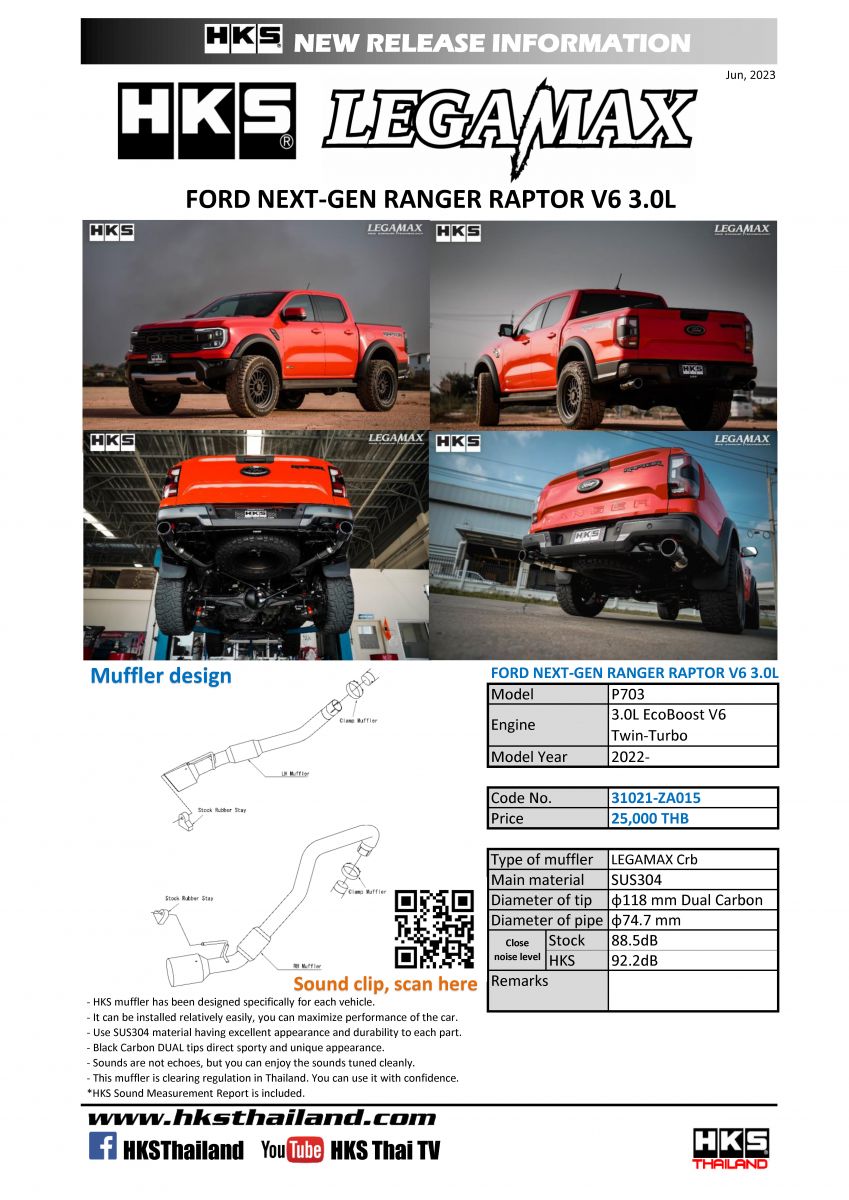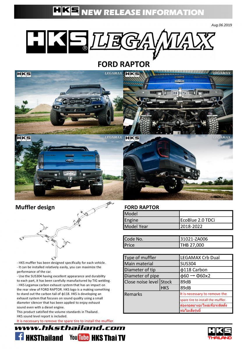 | RAPTOR | 2.0Bi-Turbo | 2018-2022 | LEGAMAX | SUS304 | 3 | 31021-ZA005 | ฿19,000 | Click | Carbon TAIL (Single) | ||