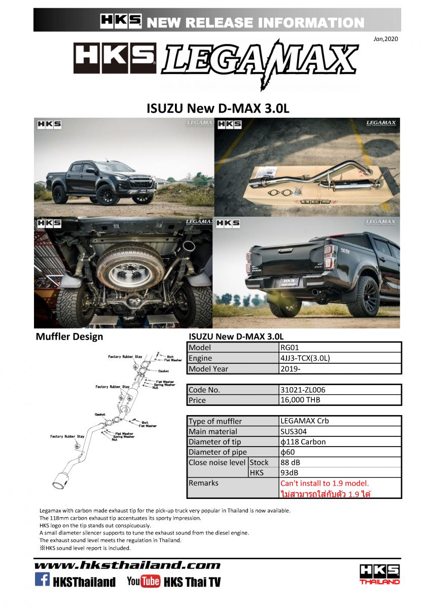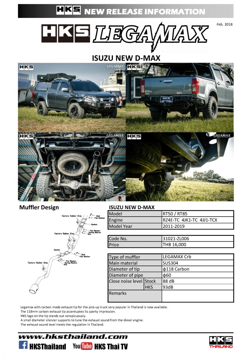 RT85 | 4JJ1-TC | 3000 cc | 2015-2019 | LEGAMAX | SUS304 | 2 | 31021-ZL006 | ฿16,000 | Click | Carbon TAIL (Single) |