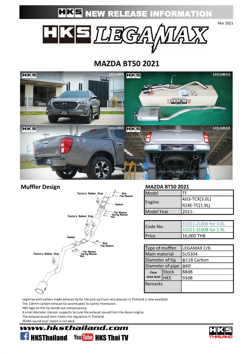 | BT50 | TF | 4JJ3-TCX | 3000 cc | 2021- | LEGAMAX | SUS304 | 2 | 31021-ZL006 | ฿16,000 | Click | Carbon TAIL (Single) |