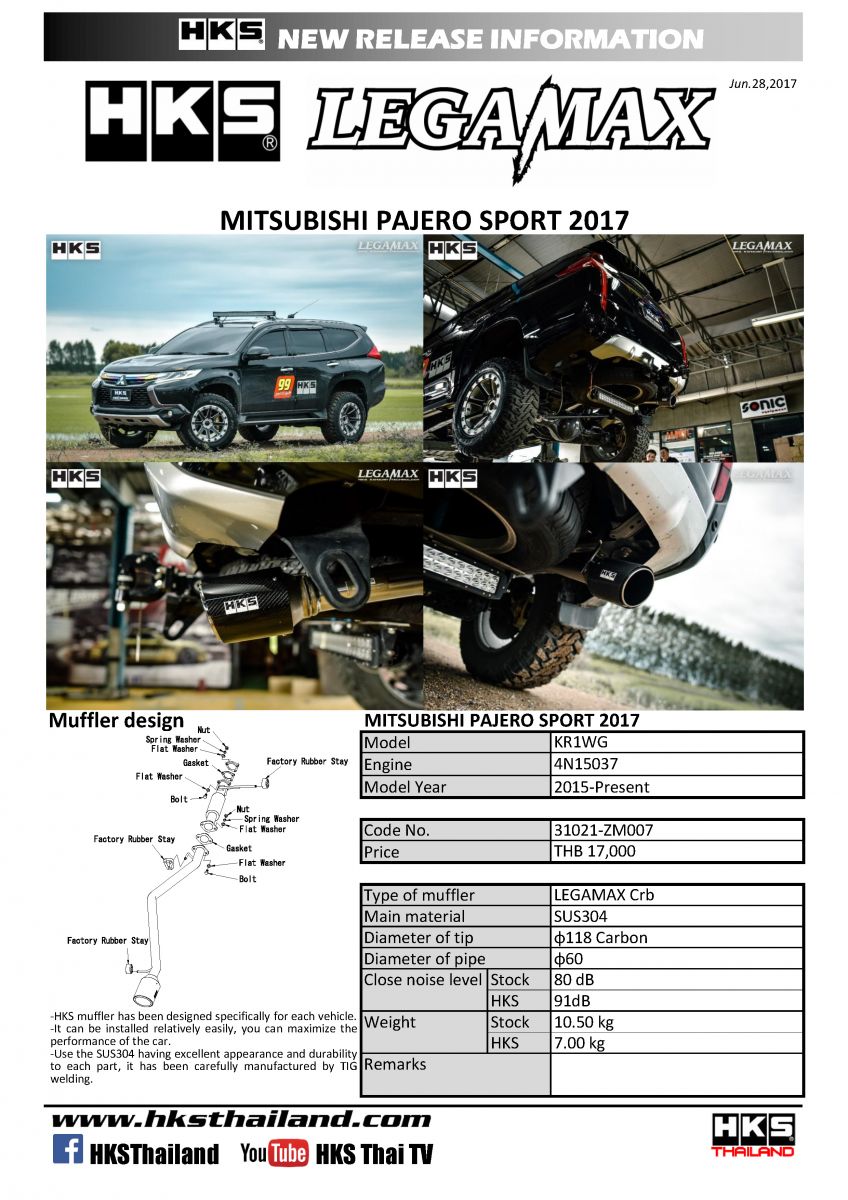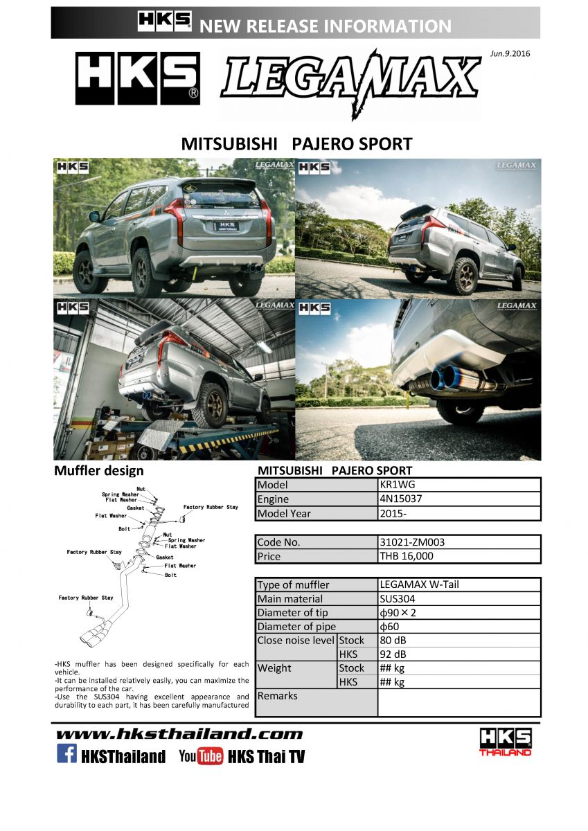 | ALL NEW PAJERO SPORT | GUK#1 | 4N15 | 2400 cc | 2015-Present | LEGAMAX Ti | SUS304 | 2 | 31021-ZM003 | ฿16,000 | Click | W-TAIL TITANIUM TAIL |