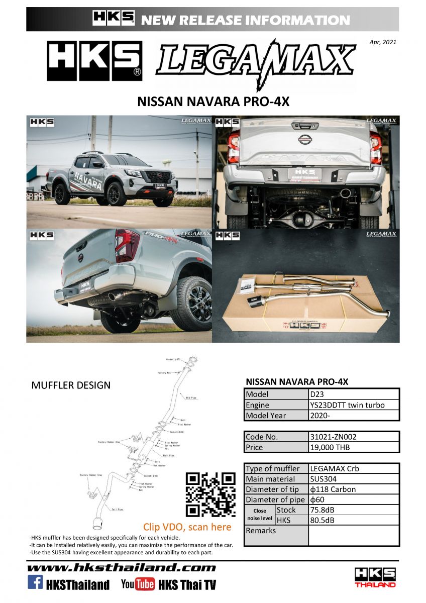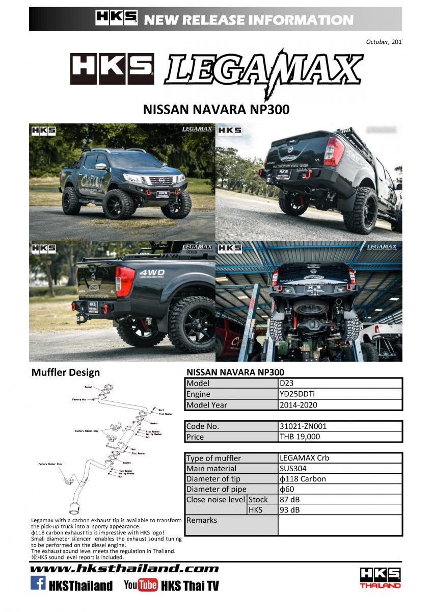 | NAVARA NP300 | D23 | YD25DDTi | 2500 cc | 2014-2020 | LEGAMAX | SUS304 | 3 | 31021-ZN001 | ฿19,000 | Click | Carbon TAIL (Single) |