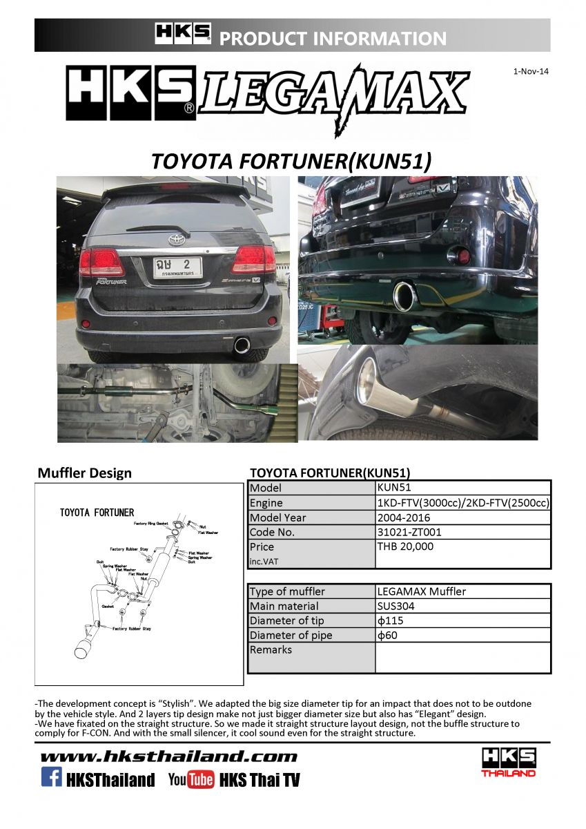 | FORTUNER | KUN51 | 1KD-FTV 2KD-FTV  |