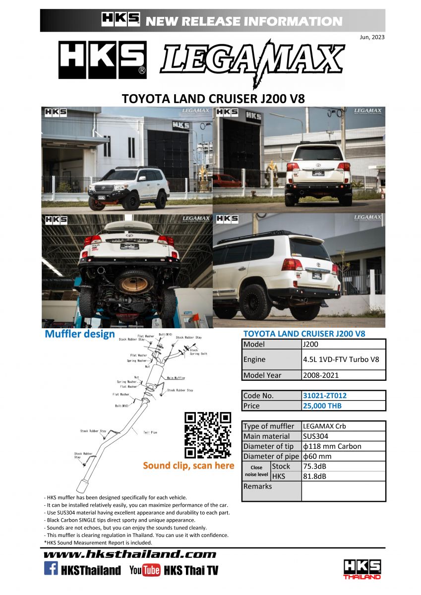 | LAND CRUISER | J200 | 1VD-FTV V8 | 4500 cc | 2006-2021 | LEGAMAX | SUS304 | 2 | 31021-ZT012 | ฿25,000 | Click | Carbon TAIL (Single) |