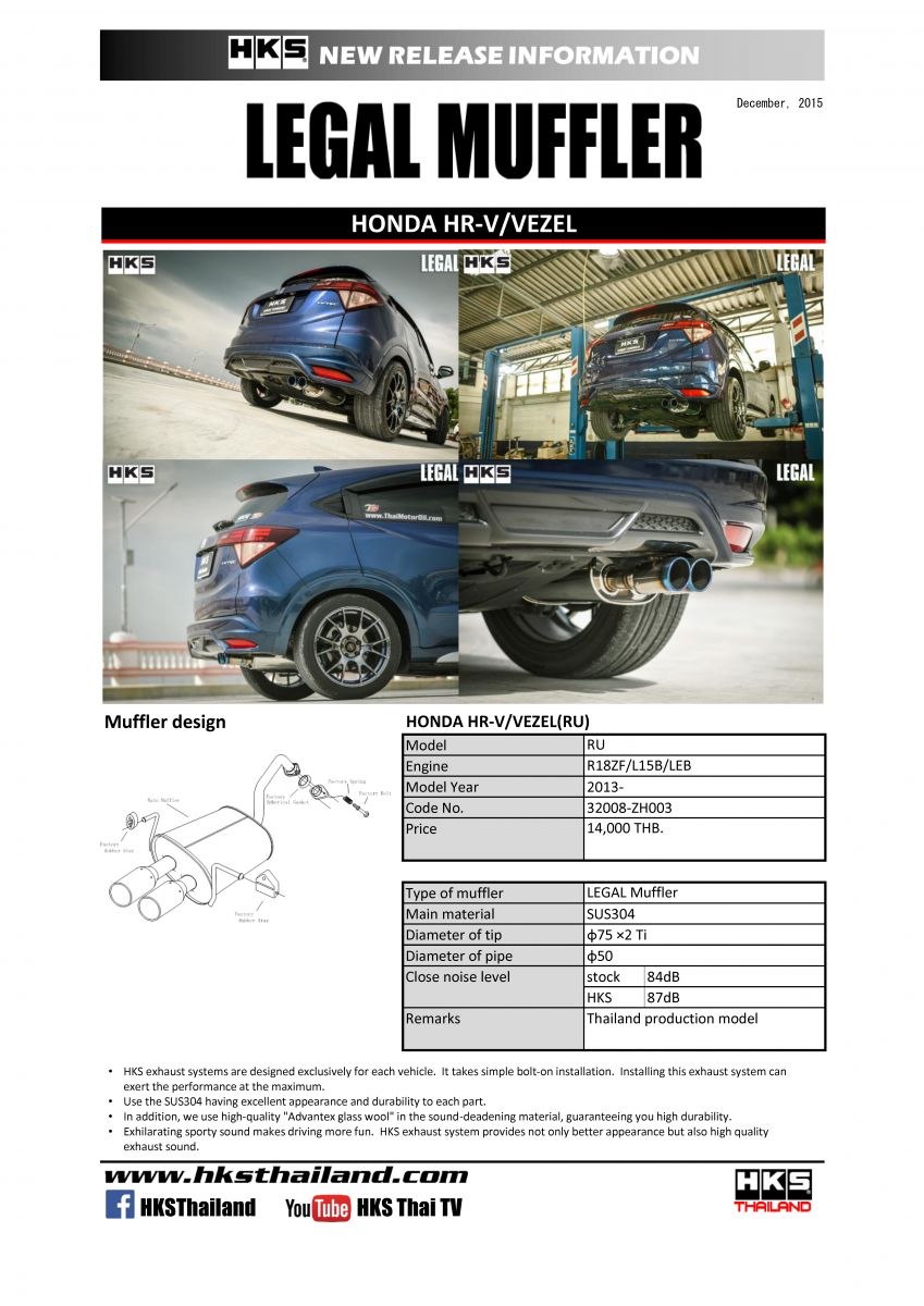| HR-V | RU1 | R18A | 1800 cc | 2015-2021 | LEGAL Ti | SUS304 | 1 | 32008-ZH003 | ฿14,000 | Click | TWIN TITANIUM TAIL |