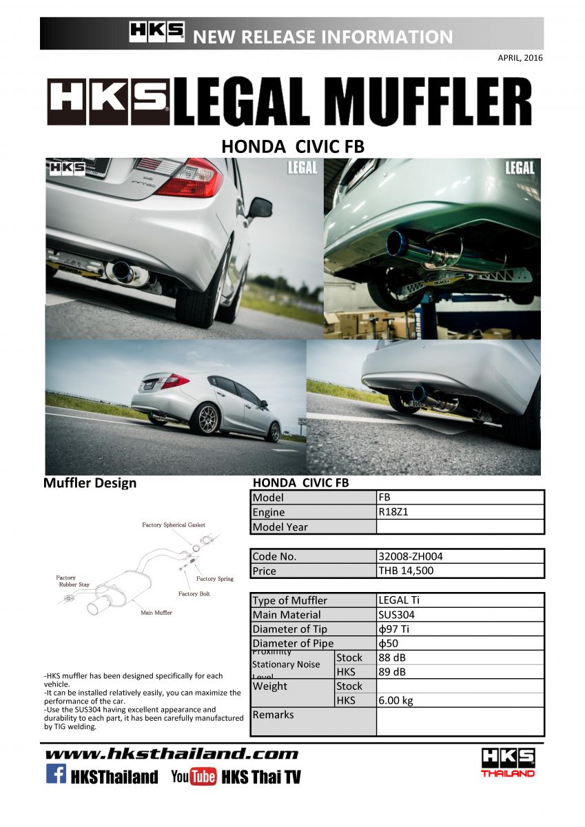 | FC 1.8 | R18Z | 1800 cc | 2016- | LEGAL Ti | SUS304 | 3 | 32008-ZH005 | ฿20,000 | Click | TWIN TITANIUM TAIL | |
