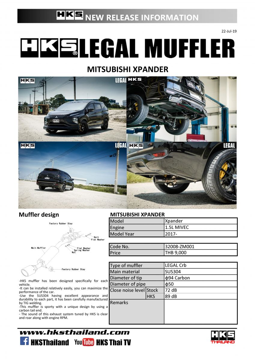 | XPANDER | NC | 4A91 MIVEC | 1500 cc | 2017- | LEGAL | SUS304 | 1 | 32008-ZM001 | ฿9,000 | Click | Carbon TAIL (Single) |