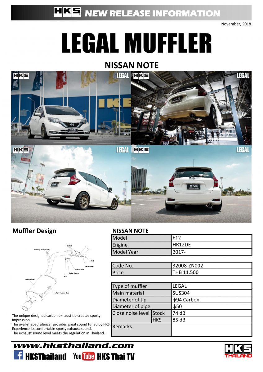 | NOTE | E12 | HR12DE | 1200 cc | 2017- | LEGAL | SUS304 | 1 | 32008-ZN002 | ฿11,500 | Click | Carbon TAIL (Single) |