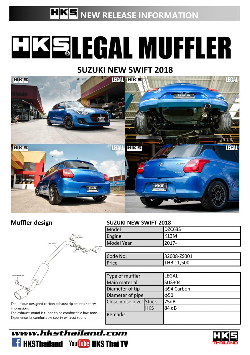 | NEW SWIFT 2018 | K12M | 1200 cc | 2018- | LEGAL | SUS304 | 1 | 32008-ZS001 | ฿11,500 | Click | Carbon TAIL (Single) | |