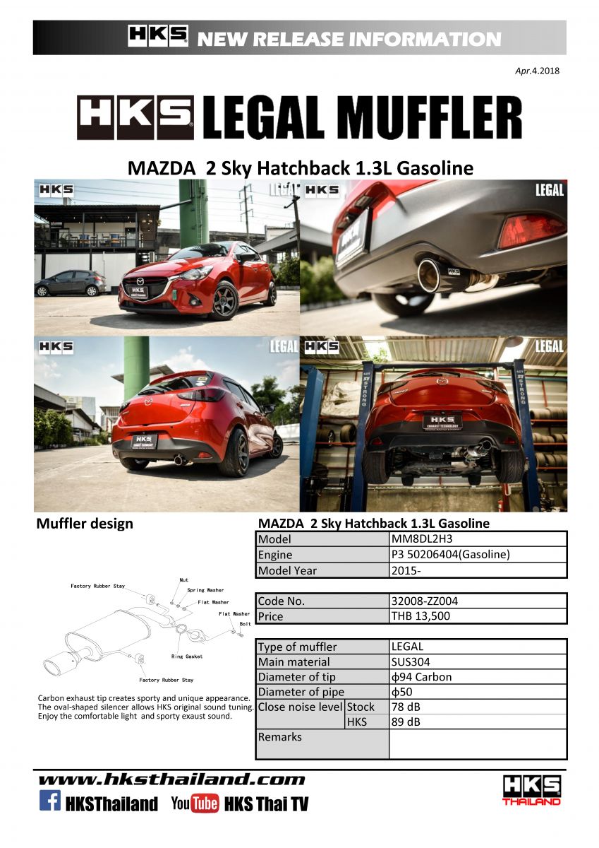 | New MAZDA2 HB | DJ | P3-VPS | 1300 cc | 2015- | LEGAL | SUS304 | 1 | 32008-ZZ004 | ฿13,500 | Click | Carbon TAIL (Single) |