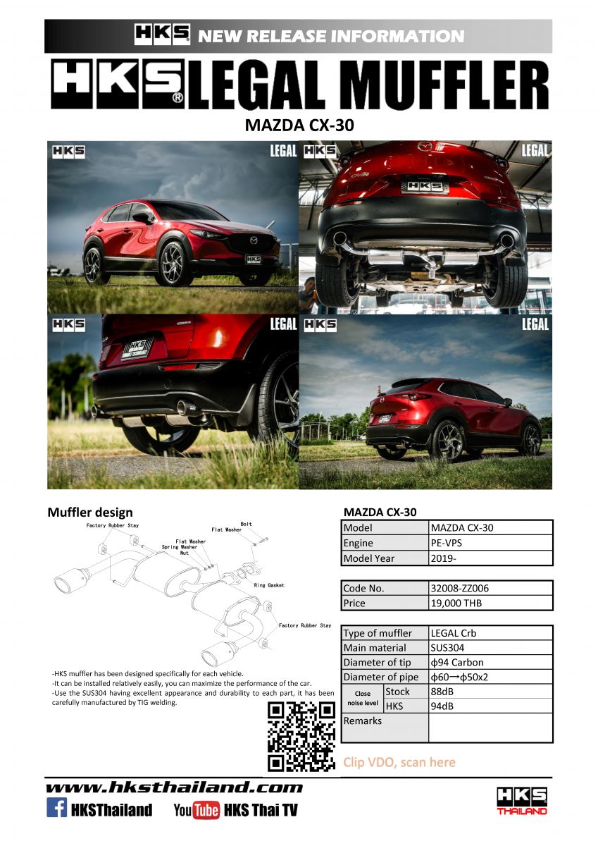 | MAZDA CX-30 | DM | PE-VPS | 2000 cc | 2019- | LEGAL | SUS304 | 1 | 32008-ZZ006 | ฿19,000 | Click | Carbon TAIL (Dual) |