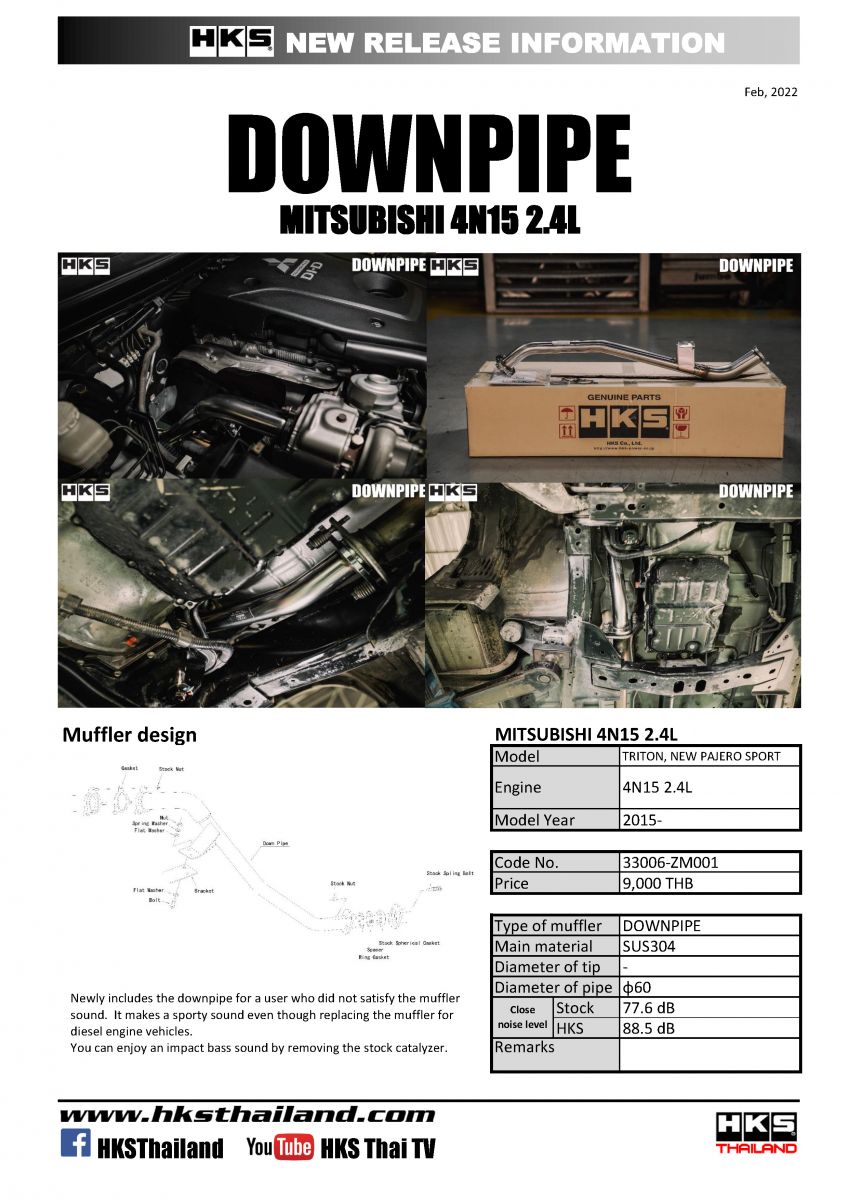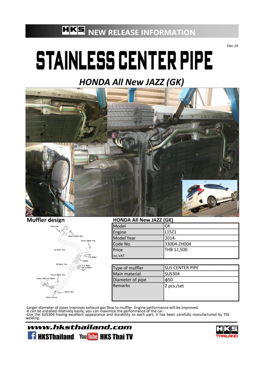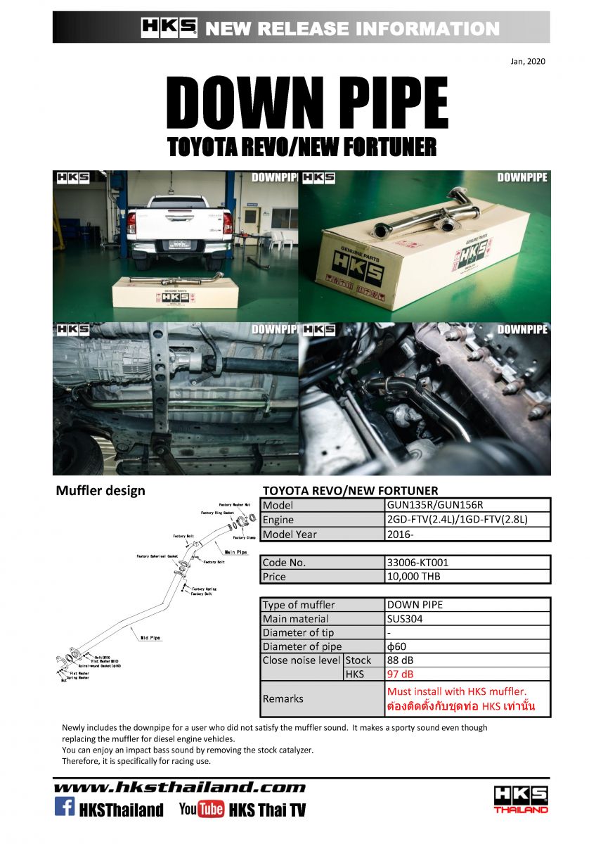 2015- | DOWNPIPE | SUS304 | 2 | 33006-KT001 | ฿10,000 | Click | Must install with HKS muffler.  |