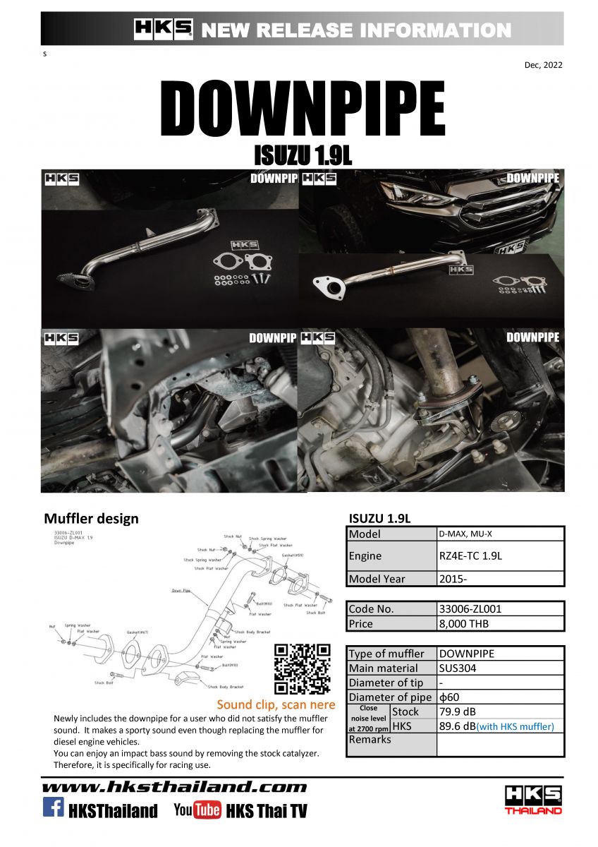 | ALL NEW D-MAX,MU-X | RZ4E-TC | 1900 cc | 2015- | DOWNPIPE | SUS304 | 1 | 33006-ZL001 | ฿8,000 | Click | ||